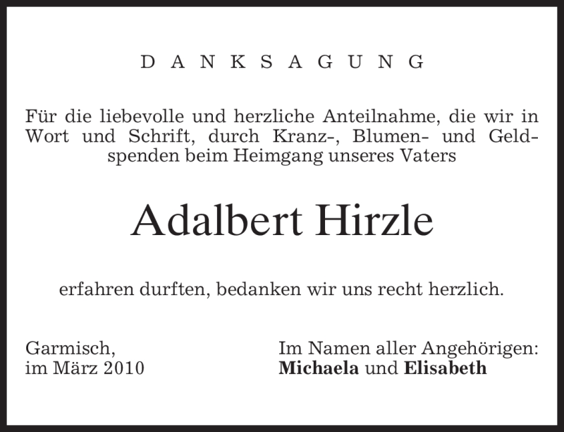 Hier finden Sie alle Traueranzeigen aus der Zeitung, die bisher für Adalbert Hirzle erschienen sind. Weitere Traueranzeigen, die in der Zeitung erscheinen, werden hier ebenfalls aufgelistet