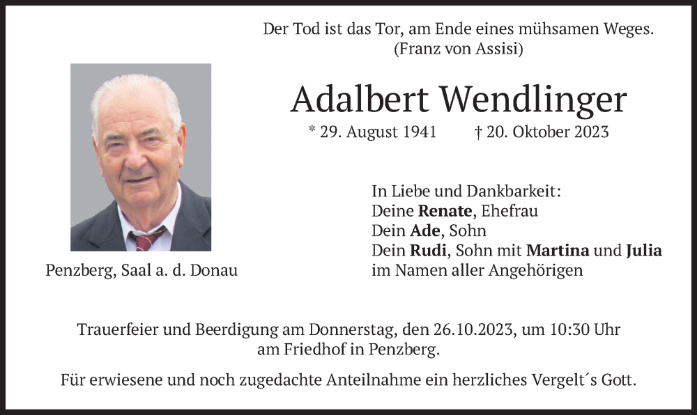 Hier finden Sie alle Traueranzeigen aus der Zeitung, die bisher für Adalbert Wendlinger erschienen sind. Weitere Traueranzeigen, die in der Zeitung erscheinen, werden hier ebenfalls aufgelistet