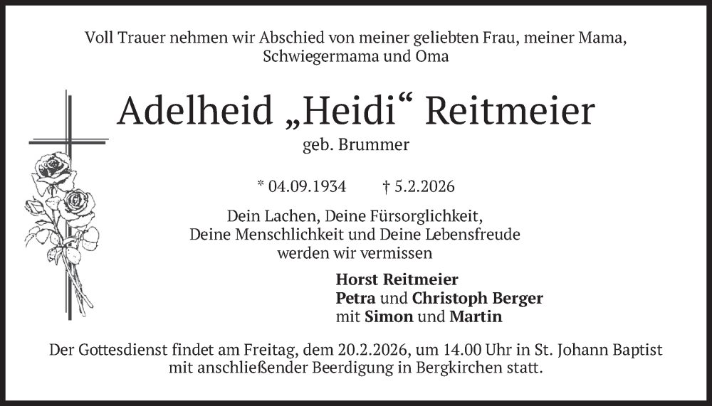 Hier finden Sie alle Traueranzeigen aus der Zeitung, die bisher für Adelheid REitmeier erschienen sind. Weitere Traueranzeigen, die in der Zeitung erscheinen, werden hier ebenfalls aufgelistet