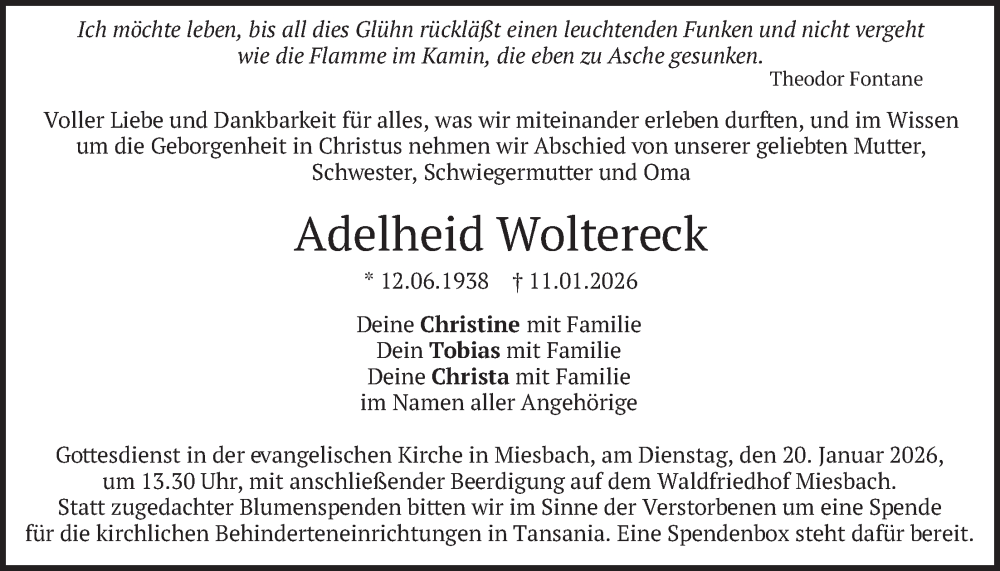 Hier finden Sie alle Traueranzeigen aus der Zeitung, die bisher für Adelheid Woltereck erschienen sind. Weitere Traueranzeigen, die in der Zeitung erscheinen, werden hier ebenfalls aufgelistet