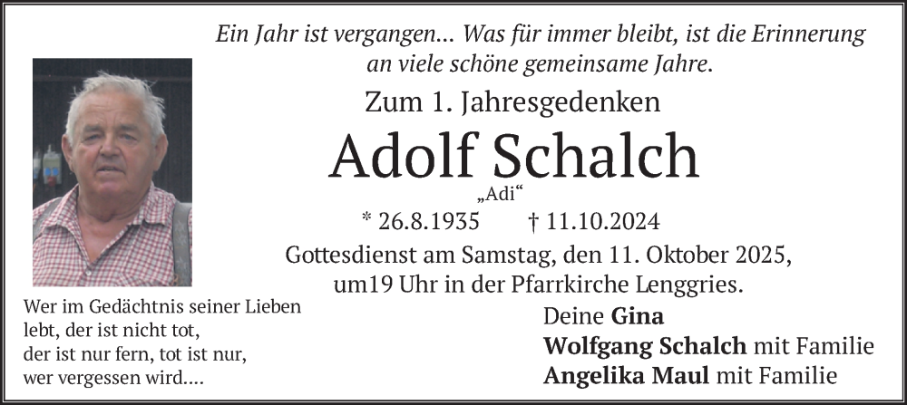 Hier finden Sie alle Traueranzeigen aus der Zeitung, die bisher für Adolf Schalch erschienen sind. Weitere Traueranzeigen, die in der Zeitung erscheinen, werden hier ebenfalls aufgelistet