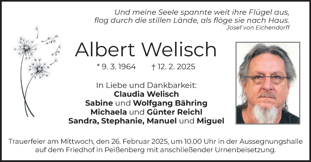 Hier finden Sie alle Traueranzeigen aus der Zeitung, die bisher für Albert Welisch erschienen sind. Weitere Traueranzeigen, die in der Zeitung erscheinen, werden hier ebenfalls aufgelistet