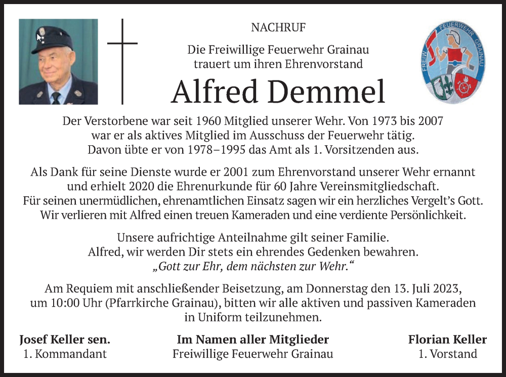 Hier finden Sie alle Traueranzeigen aus der Zeitung, die bisher für Alfred Demmel erschienen sind. Weitere Traueranzeigen, die in der Zeitung erscheinen, werden hier ebenfalls aufgelistet