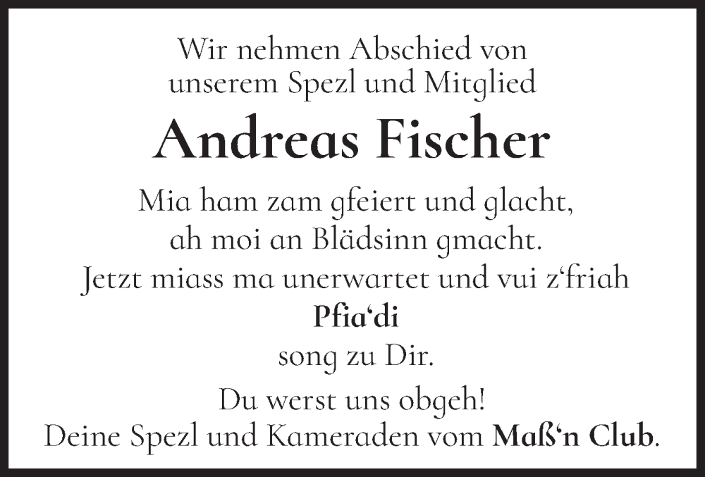 Hier finden Sie alle Traueranzeigen aus der Zeitung, die bisher für Andreas Fischer erschienen sind. Weitere Traueranzeigen, die in der Zeitung erscheinen, werden hier ebenfalls aufgelistet
