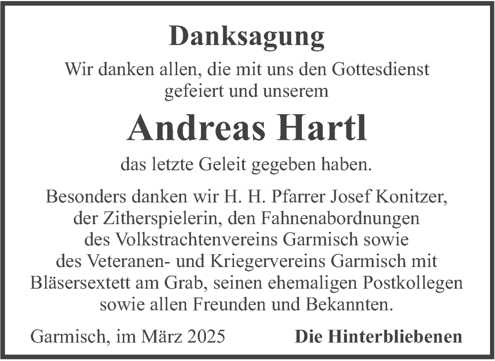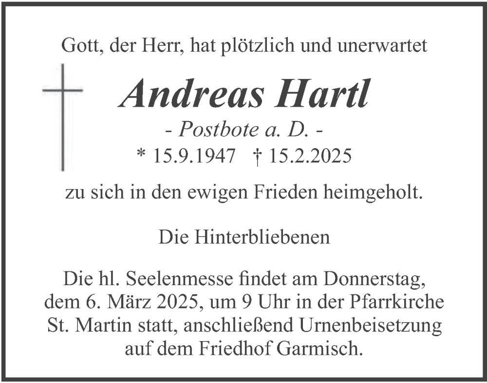 Hier finden Sie alle Traueranzeigen aus der Zeitung, die bisher für Andreas Hartl erschienen sind. Weitere Traueranzeigen, die in der Zeitung erscheinen, werden hier ebenfalls aufgelistet