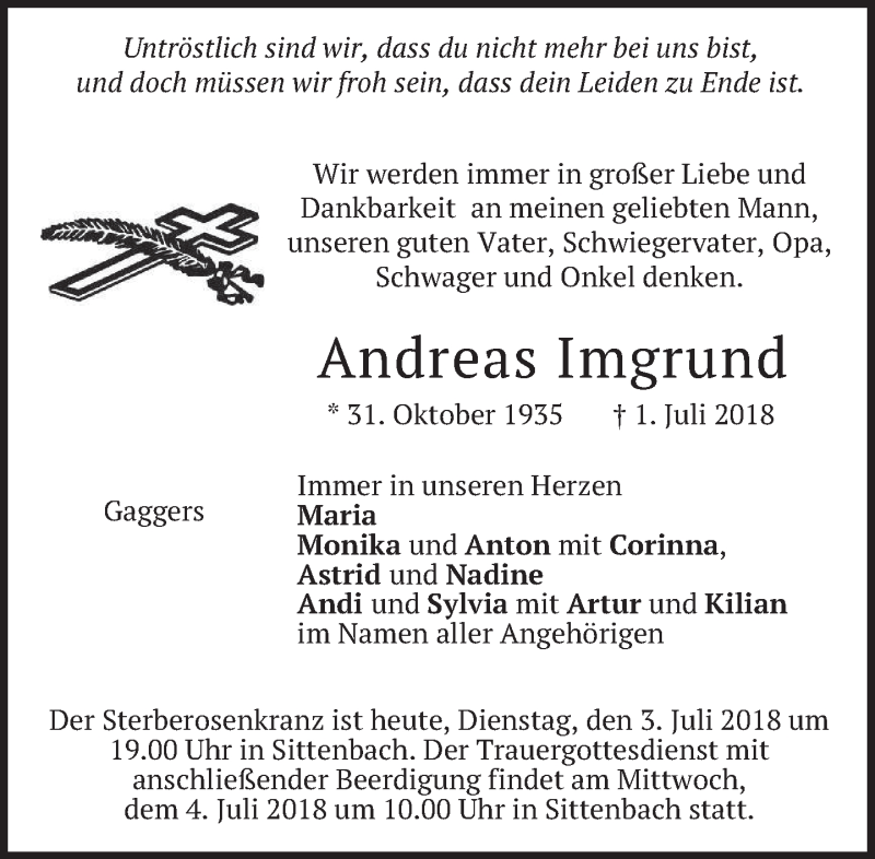 Hier finden Sie alle Traueranzeigen aus der Zeitung, die bisher für Andreas Imgrund erschienen sind. Weitere Traueranzeigen, die in der Zeitung erscheinen, werden hier ebenfalls aufgelistet