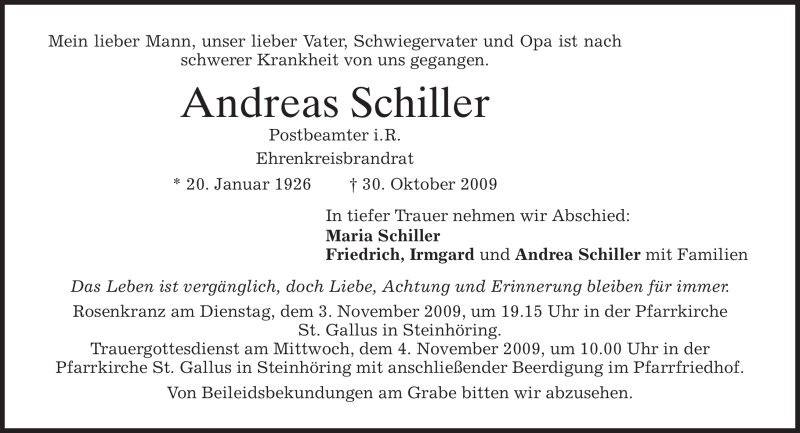 Hier finden Sie alle Traueranzeigen aus der Zeitung, die bisher für Andreas Schiller erschienen sind. Weitere Traueranzeigen, die in der Zeitung erscheinen, werden hier ebenfalls aufgelistet