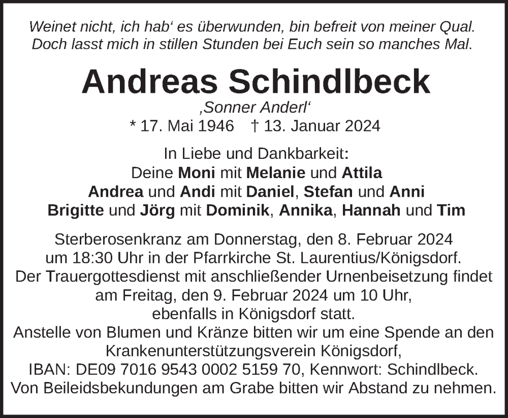Hier finden Sie alle Traueranzeigen aus der Zeitung, die bisher für Andreas Schindlbeck erschienen sind. Weitere Traueranzeigen, die in der Zeitung erscheinen, werden hier ebenfalls aufgelistet