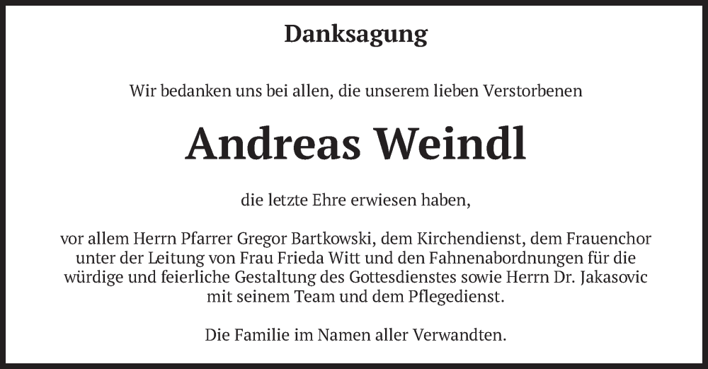 Hier finden Sie alle Traueranzeigen aus der Zeitung, die bisher für Andreas Weindl erschienen sind. Weitere Traueranzeigen, die in der Zeitung erscheinen, werden hier ebenfalls aufgelistet