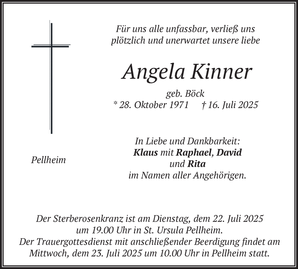 Hier finden Sie alle Traueranzeigen aus der Zeitung, die bisher für Angela Kinner erschienen sind. Weitere Traueranzeigen, die in der Zeitung erscheinen, werden hier ebenfalls aufgelistet
