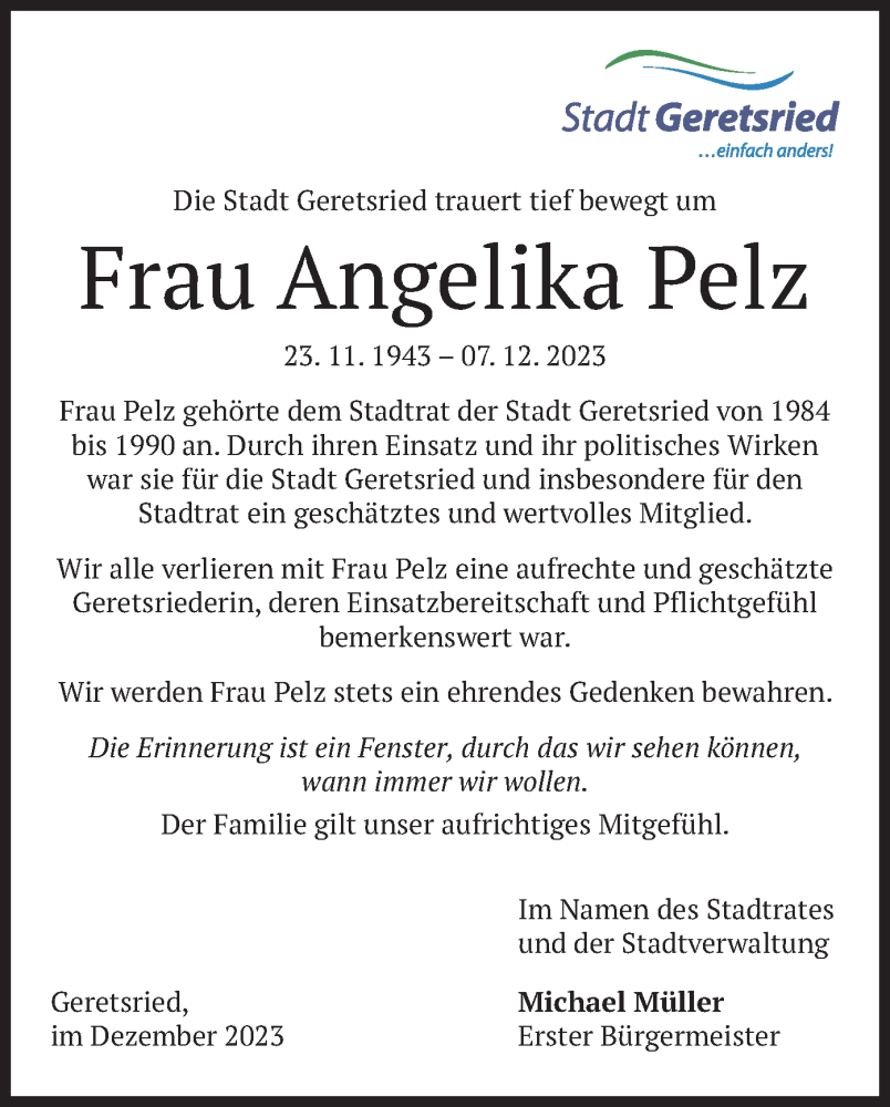 Hier finden Sie alle Traueranzeigen aus der Zeitung, die bisher für Angelika Pelz erschienen sind. Weitere Traueranzeigen, die in der Zeitung erscheinen, werden hier ebenfalls aufgelistet