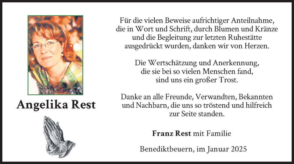 Hier finden Sie alle Traueranzeigen aus der Zeitung, die bisher für Angelika Rest erschienen sind. Weitere Traueranzeigen, die in der Zeitung erscheinen, werden hier ebenfalls aufgelistet