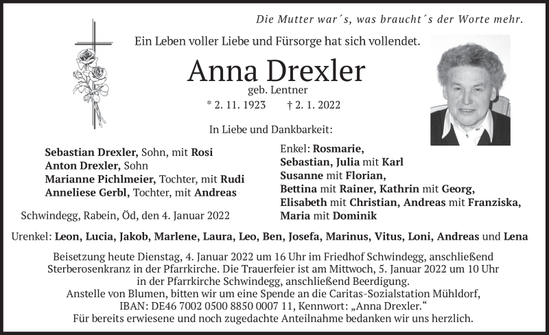 Hier finden Sie alle Traueranzeigen aus der Zeitung, die bisher für Anna Drexler erschienen sind. Weitere Traueranzeigen, die in der Zeitung erscheinen, werden hier ebenfalls aufgelistet