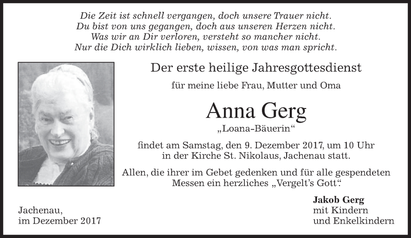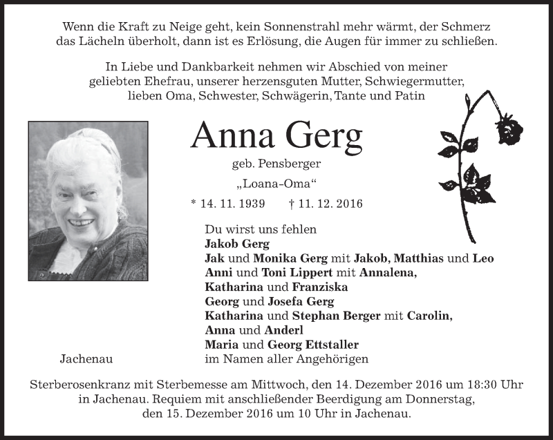 Hier finden Sie alle Traueranzeigen aus der Zeitung, die bisher für Anna Gerg erschienen sind. Weitere Traueranzeigen, die in der Zeitung erscheinen, werden hier ebenfalls aufgelistet