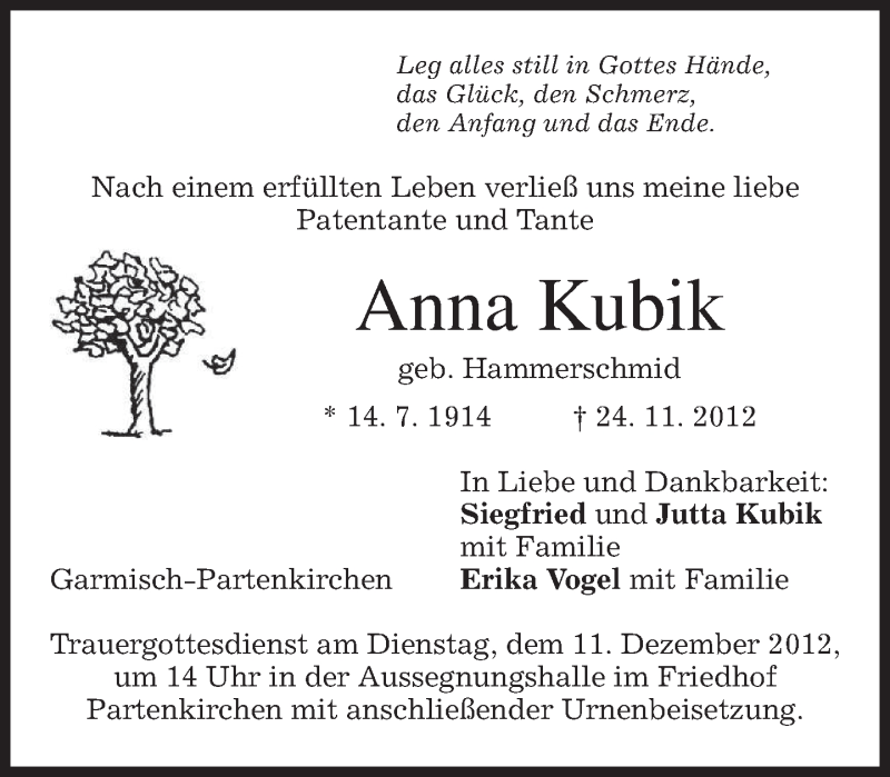 Hier finden Sie alle Traueranzeigen aus der Zeitung, die bisher für Anna Kubik erschienen sind. Weitere Traueranzeigen, die in der Zeitung erscheinen, werden hier ebenfalls aufgelistet