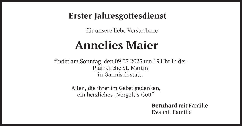 Hier finden Sie alle Traueranzeigen aus der Zeitung, die bisher für Annelies Maier erschienen sind. Weitere Traueranzeigen, die in der Zeitung erscheinen, werden hier ebenfalls aufgelistet