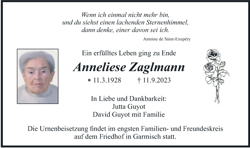 Hier finden Sie alle Traueranzeigen aus der Zeitung, die bisher für Anneliese Zaglmann erschienen sind. Weitere Traueranzeigen, die in der Zeitung erscheinen, werden hier ebenfalls aufgelistet