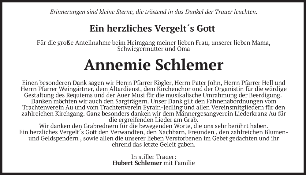 Hier finden Sie alle Traueranzeigen aus der Zeitung, die bisher für Annemie Schlemer erschienen sind. Weitere Traueranzeigen, die in der Zeitung erscheinen, werden hier ebenfalls aufgelistet
