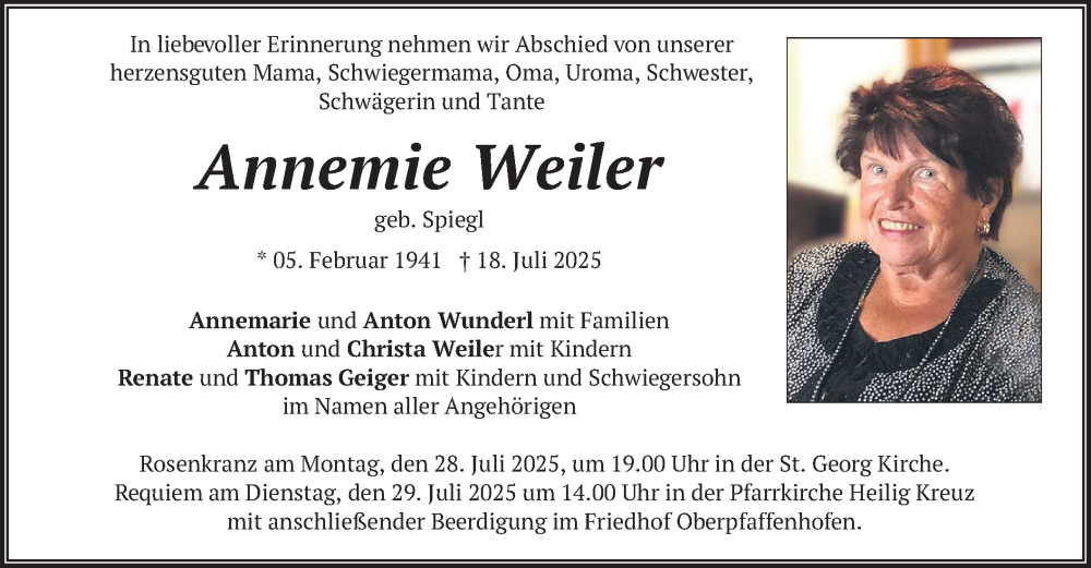 Hier finden Sie alle Traueranzeigen aus der Zeitung, die bisher für Annemie Weiler erschienen sind. Weitere Traueranzeigen, die in der Zeitung erscheinen, werden hier ebenfalls aufgelistet
