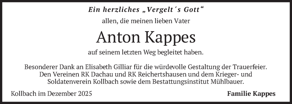 Hier finden Sie alle Traueranzeigen aus der Zeitung, die bisher für Anton Kappes erschienen sind. Weitere Traueranzeigen, die in der Zeitung erscheinen, werden hier ebenfalls aufgelistet