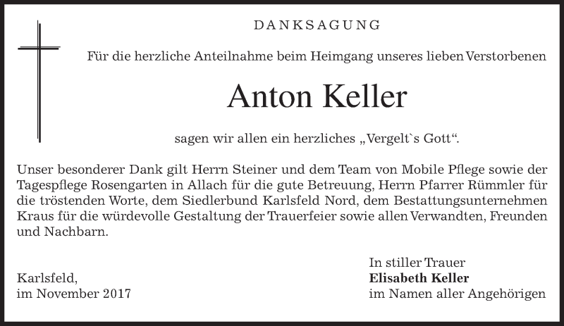 Hier finden Sie alle Traueranzeigen aus der Zeitung, die bisher für Anton Keller erschienen sind. Weitere Traueranzeigen, die in der Zeitung erscheinen, werden hier ebenfalls aufgelistet