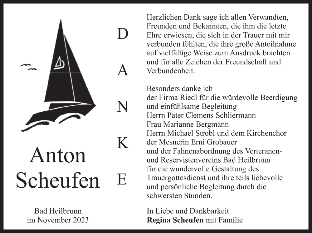 Hier finden Sie alle Traueranzeigen aus der Zeitung, die bisher für Anton Scheufen erschienen sind. Weitere Traueranzeigen, die in der Zeitung erscheinen, werden hier ebenfalls aufgelistet