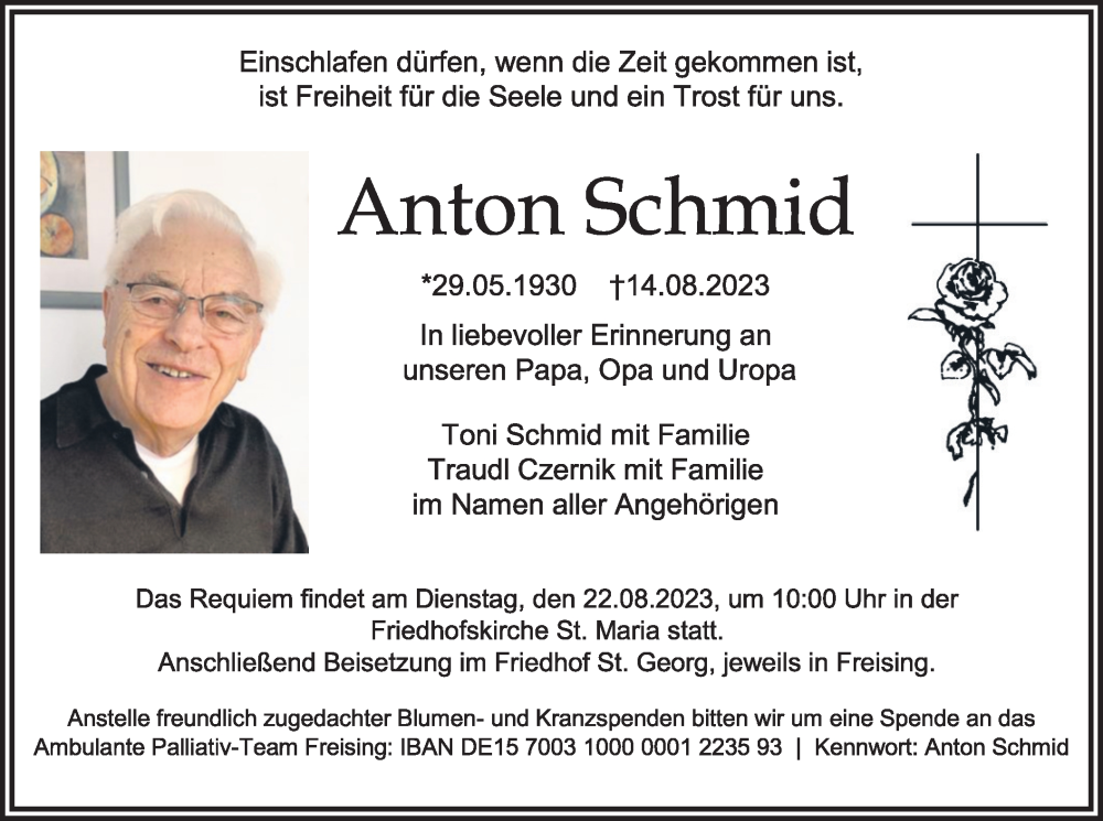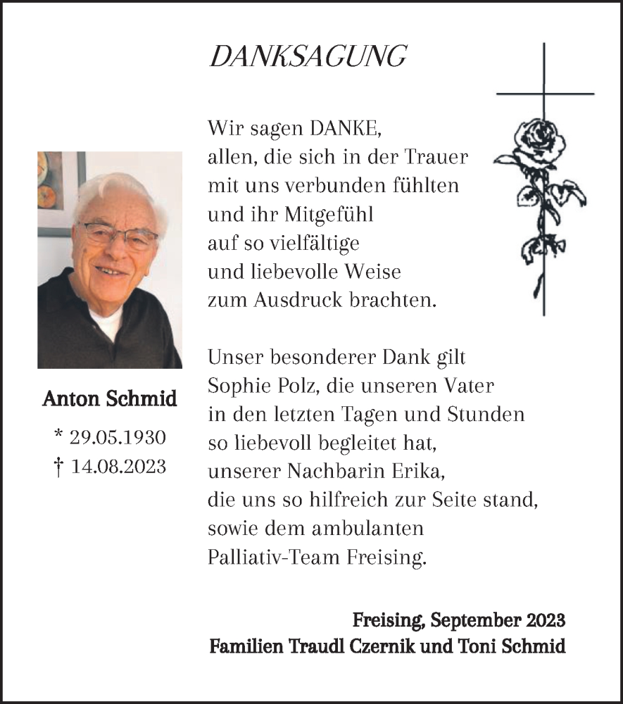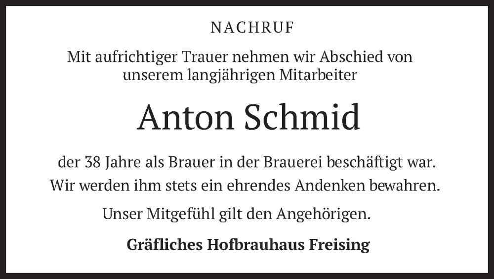 Hier finden Sie alle Traueranzeigen aus der Zeitung, die bisher für Anton Schmid erschienen sind. Weitere Traueranzeigen, die in der Zeitung erscheinen, werden hier ebenfalls aufgelistet