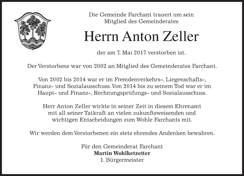 Hier finden Sie alle Traueranzeigen aus der Zeitung, die bisher für Anton Zeller erschienen sind. Weitere Traueranzeigen, die in der Zeitung erscheinen, werden hier ebenfalls aufgelistet