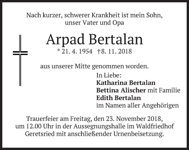 Hier finden Sie alle Traueranzeigen aus der Zeitung, die bisher für Arpad Bertalan erschienen sind. Weitere Traueranzeigen, die in der Zeitung erscheinen, werden hier ebenfalls aufgelistet