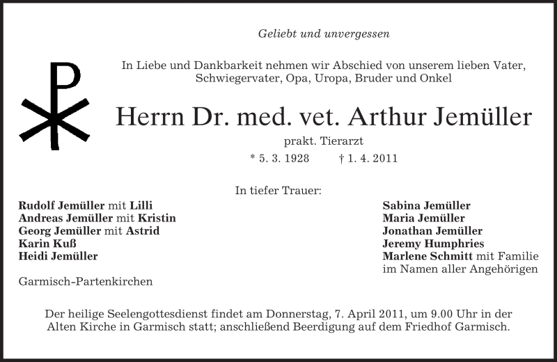 Hier finden Sie alle Traueranzeigen aus der Zeitung, die bisher für Arthur Jemüller erschienen sind. Weitere Traueranzeigen, die in der Zeitung erscheinen, werden hier ebenfalls aufgelistet