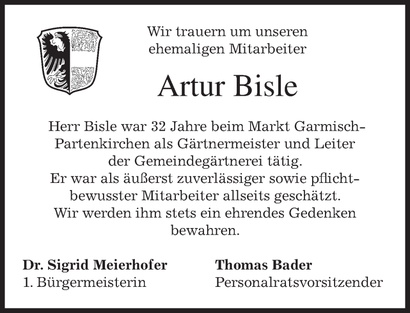 Hier finden Sie alle Traueranzeigen aus der Zeitung, die bisher für Artur Bisle erschienen sind. Weitere Traueranzeigen, die in der Zeitung erscheinen, werden hier ebenfalls aufgelistet