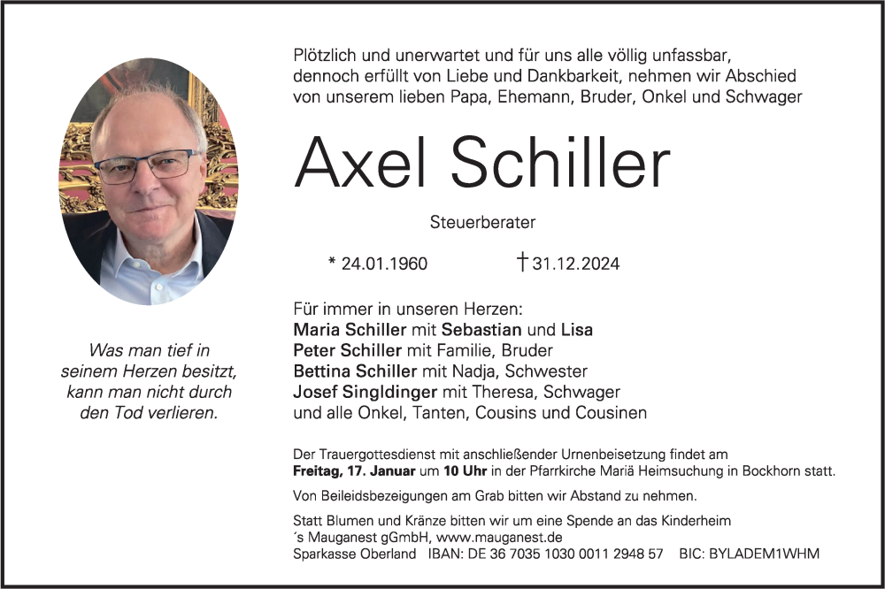 Hier finden Sie alle Traueranzeigen aus der Zeitung, die bisher für Axel Schiller erschienen sind. Weitere Traueranzeigen, die in der Zeitung erscheinen, werden hier ebenfalls aufgelistet