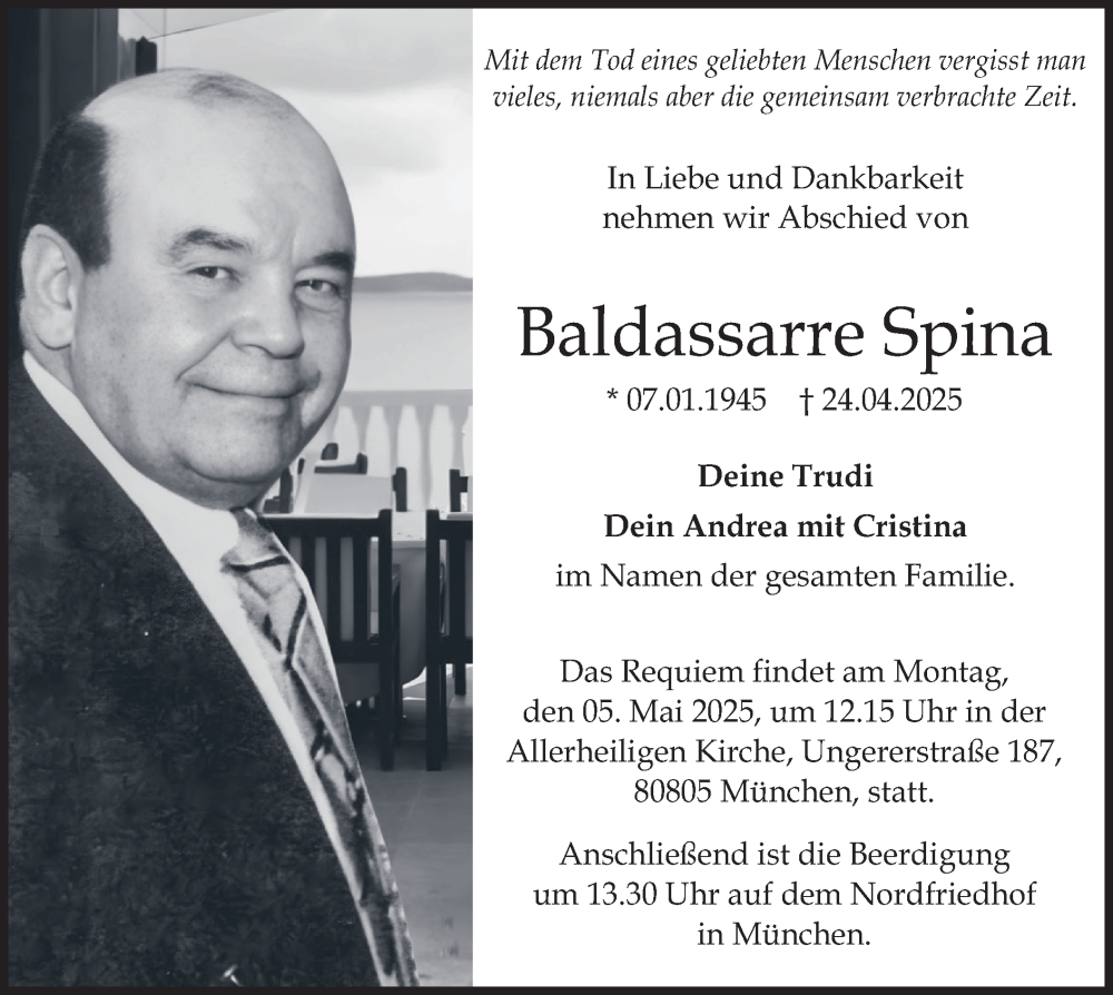 Hier finden Sie alle Traueranzeigen aus der Zeitung, die bisher für Baldassarre Spina erschienen sind. Weitere Traueranzeigen, die in der Zeitung erscheinen, werden hier ebenfalls aufgelistet