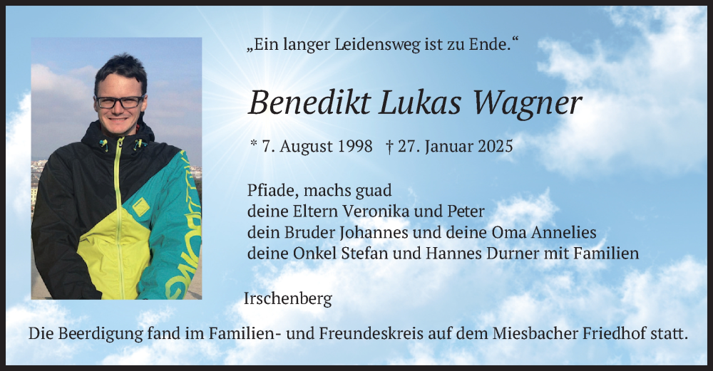 Hier finden Sie alle Traueranzeigen aus der Zeitung, die bisher für Benedikt Lukas Wagner erschienen sind. Weitere Traueranzeigen, die in der Zeitung erscheinen, werden hier ebenfalls aufgelistet