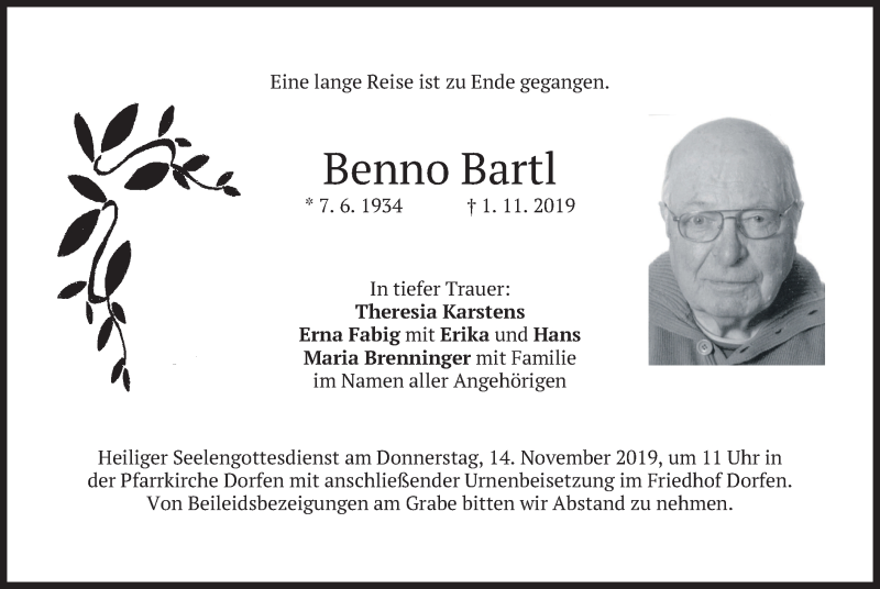 Hier finden Sie alle Traueranzeigen aus der Zeitung, die bisher für Benno Bartl erschienen sind. Weitere Traueranzeigen, die in der Zeitung erscheinen, werden hier ebenfalls aufgelistet