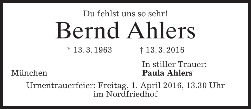 Hier finden Sie alle Traueranzeigen aus der Zeitung, die bisher für Bernd Ahlers erschienen sind. Weitere Traueranzeigen, die in der Zeitung erscheinen, werden hier ebenfalls aufgelistet