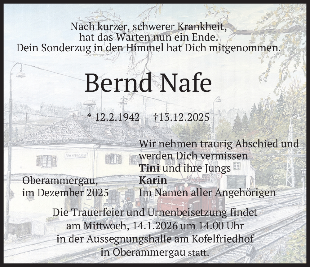 Hier finden Sie alle Traueranzeigen aus der Zeitung, die bisher für Bernd Nafe erschienen sind. Weitere Traueranzeigen, die in der Zeitung erscheinen, werden hier ebenfalls aufgelistet