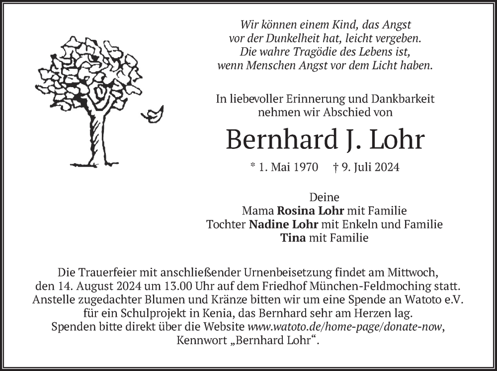 Hier finden Sie alle Traueranzeigen aus der Zeitung, die bisher für Bernhard Lohr erschienen sind. Weitere Traueranzeigen, die in der Zeitung erscheinen, werden hier ebenfalls aufgelistet