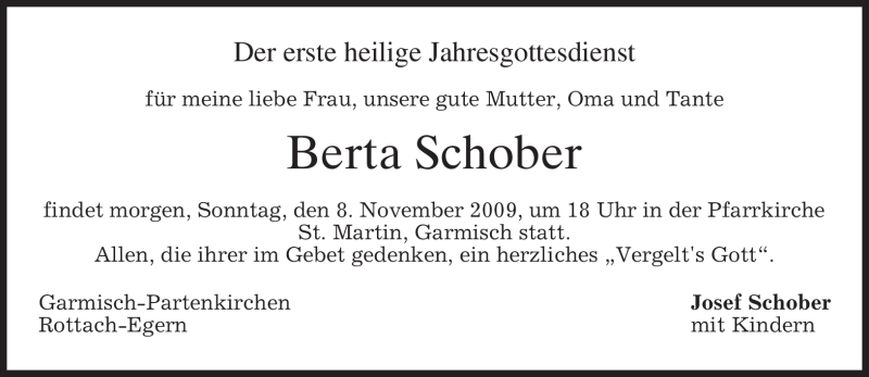 Hier finden Sie alle Traueranzeigen aus der Zeitung, die bisher für Berta Schober erschienen sind. Weitere Traueranzeigen, die in der Zeitung erscheinen, werden hier ebenfalls aufgelistet