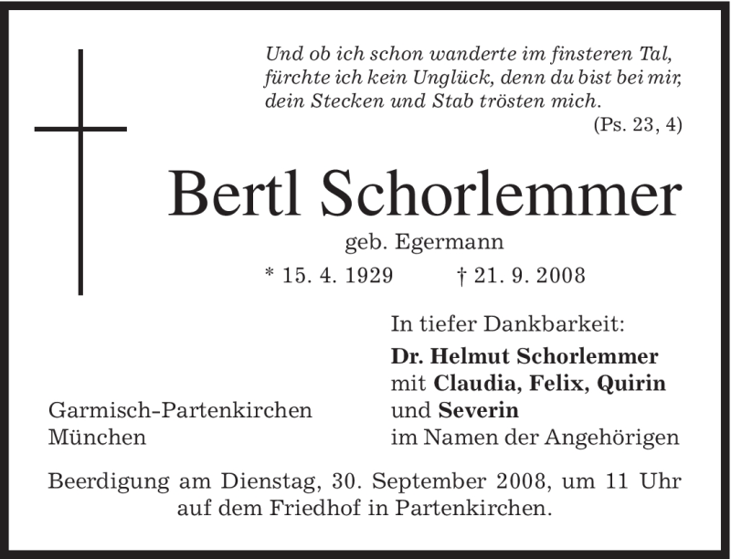 Hier finden Sie alle Traueranzeigen aus der Zeitung, die bisher für Bertl Schorlemmer erschienen sind. Weitere Traueranzeigen, die in der Zeitung erscheinen, werden hier ebenfalls aufgelistet