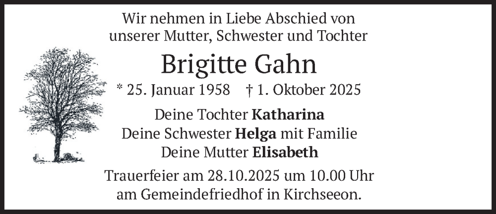 Hier finden Sie alle Traueranzeigen aus der Zeitung, die bisher für Brigitte Gahn erschienen sind. Weitere Traueranzeigen, die in der Zeitung erscheinen, werden hier ebenfalls aufgelistet