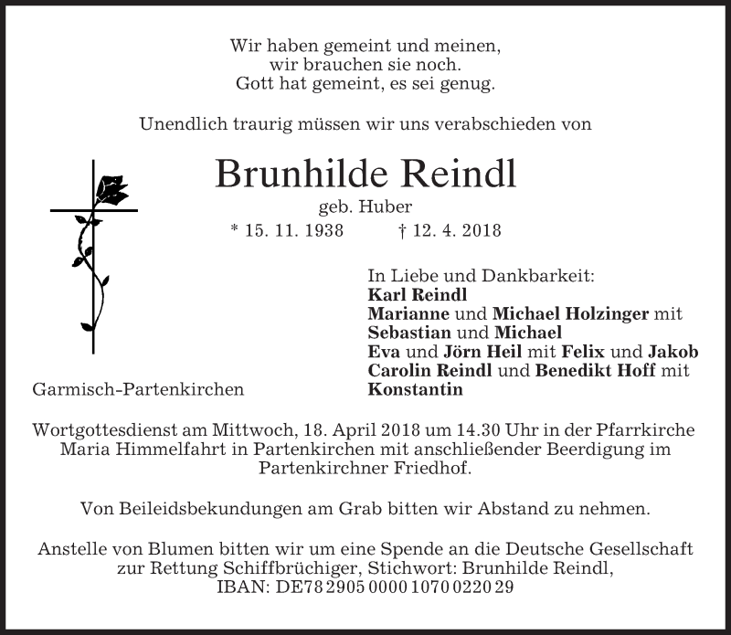 Hier finden Sie alle Traueranzeigen aus der Zeitung, die bisher für Brunhilde Reindl erschienen sind. Weitere Traueranzeigen, die in der Zeitung erscheinen, werden hier ebenfalls aufgelistet