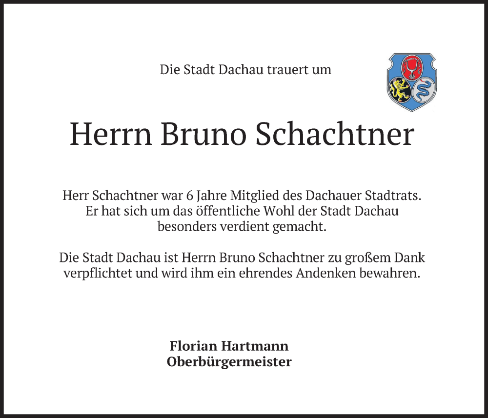 Hier finden Sie alle Traueranzeigen aus der Zeitung, die bisher für Bruno Schachtner erschienen sind. Weitere Traueranzeigen, die in der Zeitung erscheinen, werden hier ebenfalls aufgelistet