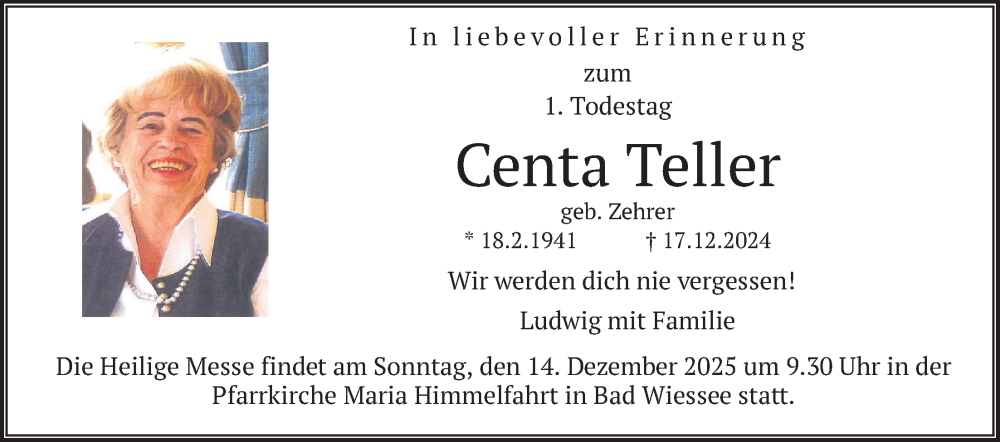 Hier finden Sie alle Traueranzeigen aus der Zeitung, die bisher für Centa Teller erschienen sind. Weitere Traueranzeigen, die in der Zeitung erscheinen, werden hier ebenfalls aufgelistet