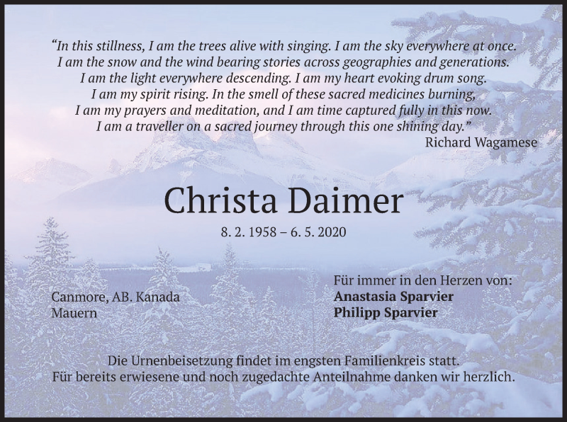 Hier finden Sie alle Traueranzeigen aus der Zeitung, die bisher für Christa Daimer erschienen sind. Weitere Traueranzeigen, die in der Zeitung erscheinen, werden hier ebenfalls aufgelistet