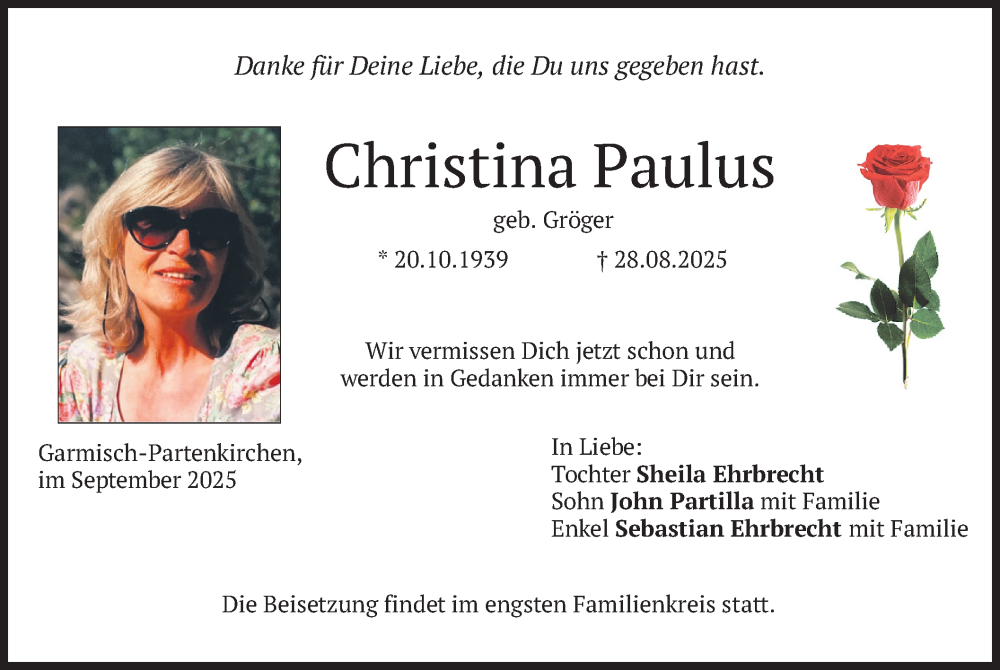 Hier finden Sie alle Traueranzeigen aus der Zeitung, die bisher für Christina Paulus erschienen sind. Weitere Traueranzeigen, die in der Zeitung erscheinen, werden hier ebenfalls aufgelistet