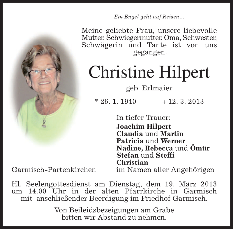Hier finden Sie alle Traueranzeigen aus der Zeitung, die bisher für Christine Hilpert erschienen sind. Weitere Traueranzeigen, die in der Zeitung erscheinen, werden hier ebenfalls aufgelistet