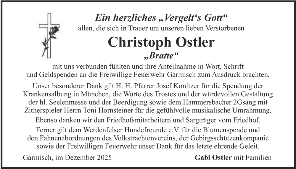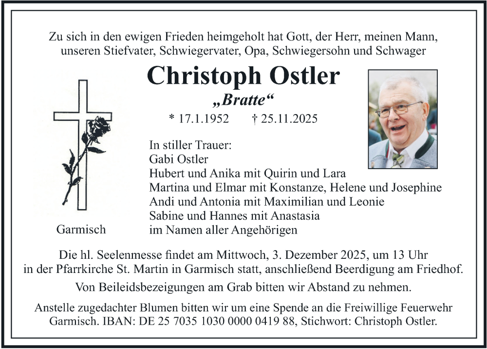 Hier finden Sie alle Traueranzeigen aus der Zeitung, die bisher für Christoph Ostler erschienen sind. Weitere Traueranzeigen, die in der Zeitung erscheinen, werden hier ebenfalls aufgelistet