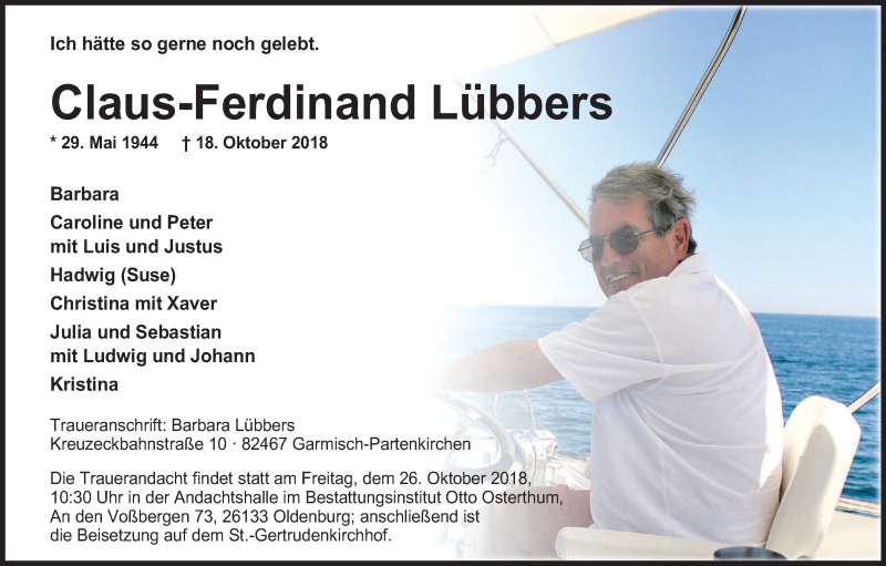 Hier finden Sie alle Traueranzeigen aus der Zeitung, die bisher für Claus-Ferdinand Lübbers erschienen sind. Weitere Traueranzeigen, die in der Zeitung erscheinen, werden hier ebenfalls aufgelistet