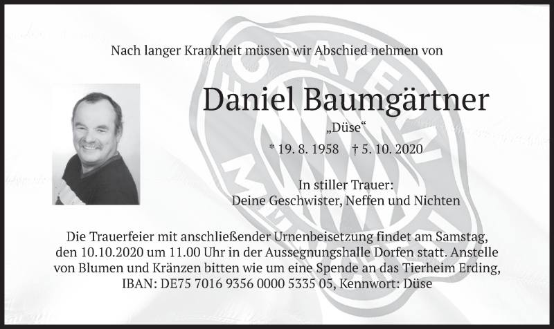 Hier finden Sie alle Traueranzeigen aus der Zeitung, die bisher für Daniel Baumgärtner erschienen sind. Weitere Traueranzeigen, die in der Zeitung erscheinen, werden hier ebenfalls aufgelistet